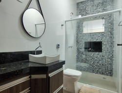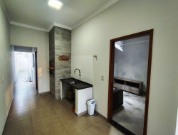 02 VAGAS DE GARAGEM, ESPAÇO COM CHURRASQUEIRA, SALA, COZINHA COM BALCÃO PLANEJADA, 2 DORMITÓRIOS SENDO UM SUÍTE, BANHEIRO SOCIAL, LAVANDERIA COBERTA. LOTE DE 160 M²