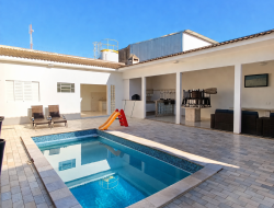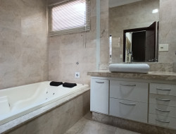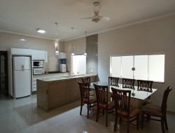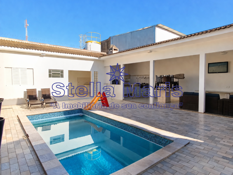 .Três dormitórios, sendo uma suíte com banheira .Banheiro social .Sala de tv e sala de estar .Cozinha americana, planejada .Sala de jantar .Banheiro social .Lavanderia coberta .Vaga de garagem coberta, com portão eletrônico .Área gourmet com churrasqueira .Piscina .Lavanderia coberta