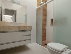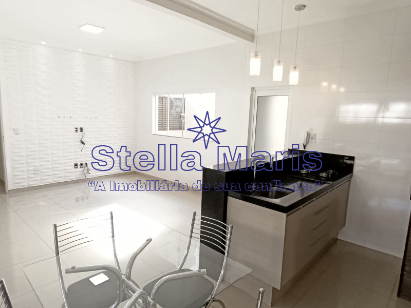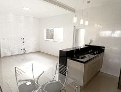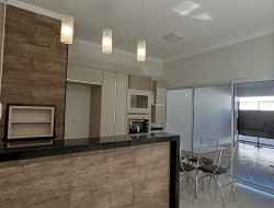 .Garagem coberta, com portão eletrônico e interfone .Cozinha planejada, com área Gourmet e churrasqueira .Sala de TV com iluminação exclusiva .Três dormitórios .Banheiro social .Lavanderia coberta .Banheiro externo .Laje e piso frio