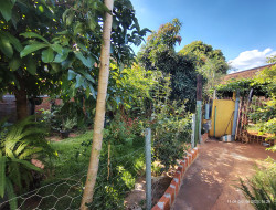 IMÓVEL RESIDENCIAL COM SALÃO COMERCIAL AO LADO - GARAGEM, SALA, COZINHA, 2 DORMITÓRIOS, BANHEIRO SOCIAL, LAVANDERIA, DESPENSA E QUINTAL COM FRUTAS. EDÍCULA CONJUGADA DE LAJE COM SALA, DORMITÓRIO E BANHEIRO. + SALÃO COMERCIAL COM BANHEIRO. LOTE 400 M² - CASA 124 M² - SALÃO 76 M².